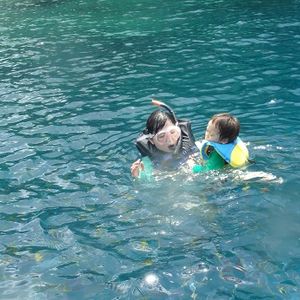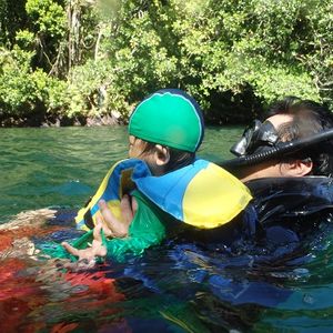 もちろんこどもはライフジャケット着用なのでちゃんと浮いていれば問題ないでしょうし、私達も夫婦で協力して一緒に泳いで、ガイドさんたち2人ももちろんこどもをケアしてくれて何事も無く終了し、こどもともども非常に楽しむことができました。
