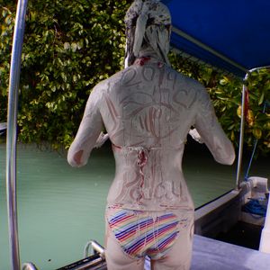 ミルキーウェイでは、ガイドの人が泥だらけの背中に絵を描いてくれて写真に撮ってくれました。