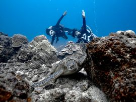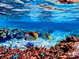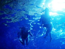 人がそこそこいるが海の透明度は高く、人慣れしてる魚を間近に見ることができる。