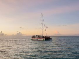 フェリーに乗って無人島に行き、軽い島内散策やシュノーケルを楽しめた。