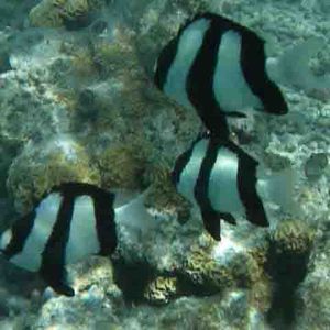 ミスジリュウキュウスズメダイ、タテジマキンチャクダイ、ツノダシ