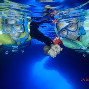 朝一のに予約し、数分遅れて、ジムがピックアップに来ました。ラッキーなことに、私達2人だけでした!(数分後には、中国人の団体が来て、大騒ぎでしたが)グロットに行くまでに、フルーツを買ったり、バンザイクリフに寄ったり、オススメのポイントやご飯屋さんを教えてくれたりします。グロットに着くと、一番乗りでした!下に降りる階段が、結構長いので要注意です(笑)(帰りのが、辛かったですが)初めてのシュノーケリングでしたが、教えてもらえるので、直ぐに出来ました!水中撮影を沢山してくれたり、自由時間もゆっくりあるので、楽しめますよ!ただ、別にガイドは、仕事を真面目にやってくれれば、誰でもいいです。あんなに上から目線のガイドは、初めてでした。こちらが、謙虚な対応を心掛けるべきなんでしょうね。まあ、文化の違いなので、仕方がないですね。