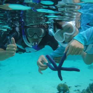 危険も伴うシュノーケリングですが、ジムさんやスタッフの方のきめ細かいサポートのもと、親子で安全に楽しませていただきました! ジムさんのバブルリングは銀色に光って本当にキレイでした。海の青さを写真にも残していただき感謝です!