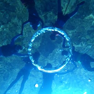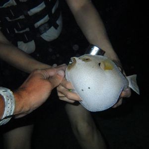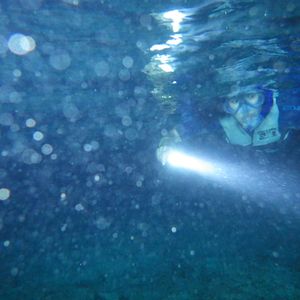 鼻から多少は海水が入った模様でしたが、そんなことは忘れて青い光をみて感激してました。