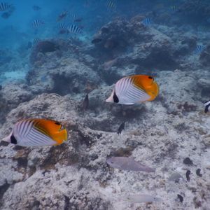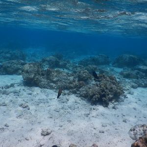 水がとても奇麗で、サンゴ礁には沢山の魚が見れます。足の着く範囲で沢山魚が見れますので、シュノーケル持参がお薦めです。レンタルも可能ですが