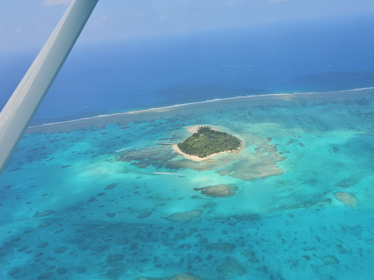 空から、サンゴ礁でわかれた青色と水色の海は本当にすごかった!しかも思ったより浮遊時間が長くて空の旅を楽しめました♬