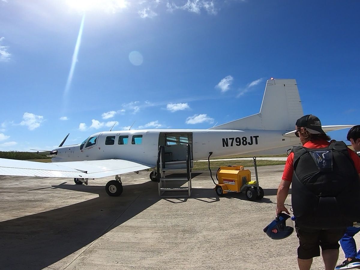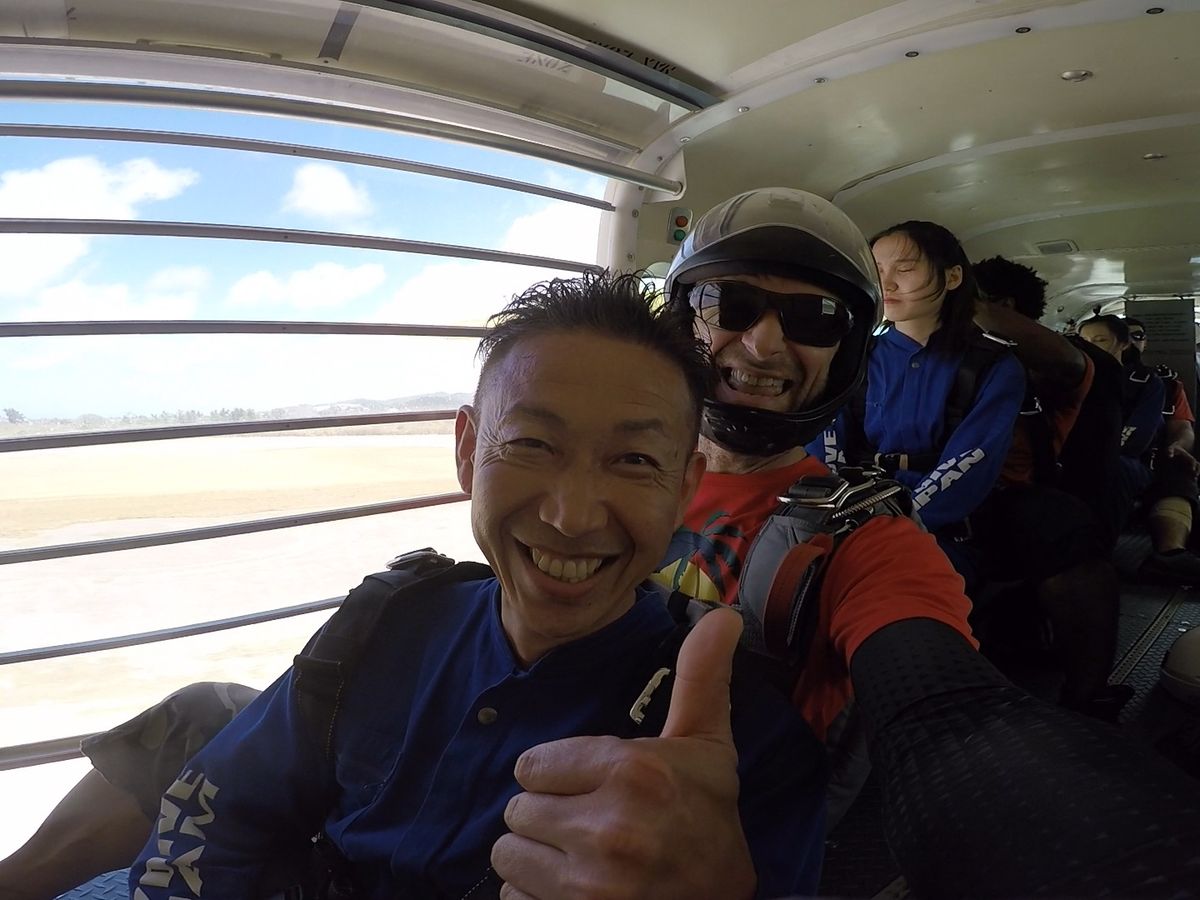 どんどん上昇するセスナの中で、ドキドキが止まらず…ですが2400mに着いた時点で、怖がる間もなく順番にポンポンと落下!