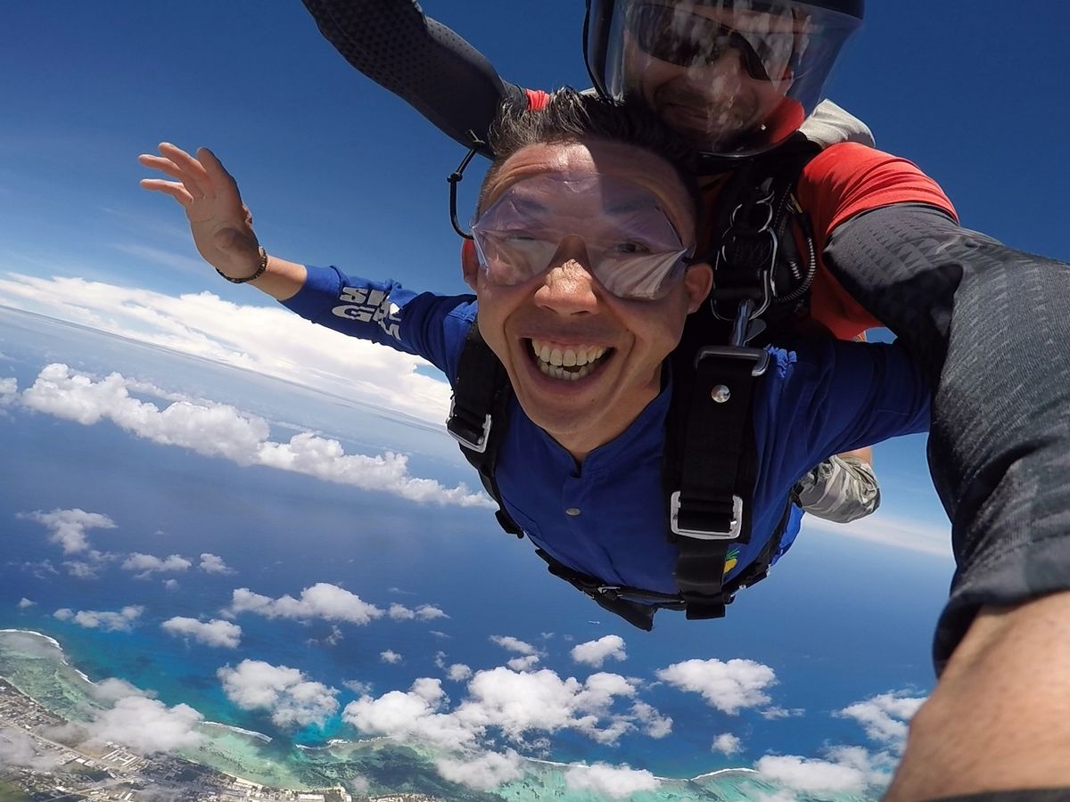 サイパンのきれいな海を見ながらの落下は最高です。真っ白の雲の中は冷たかったです。また来ます!