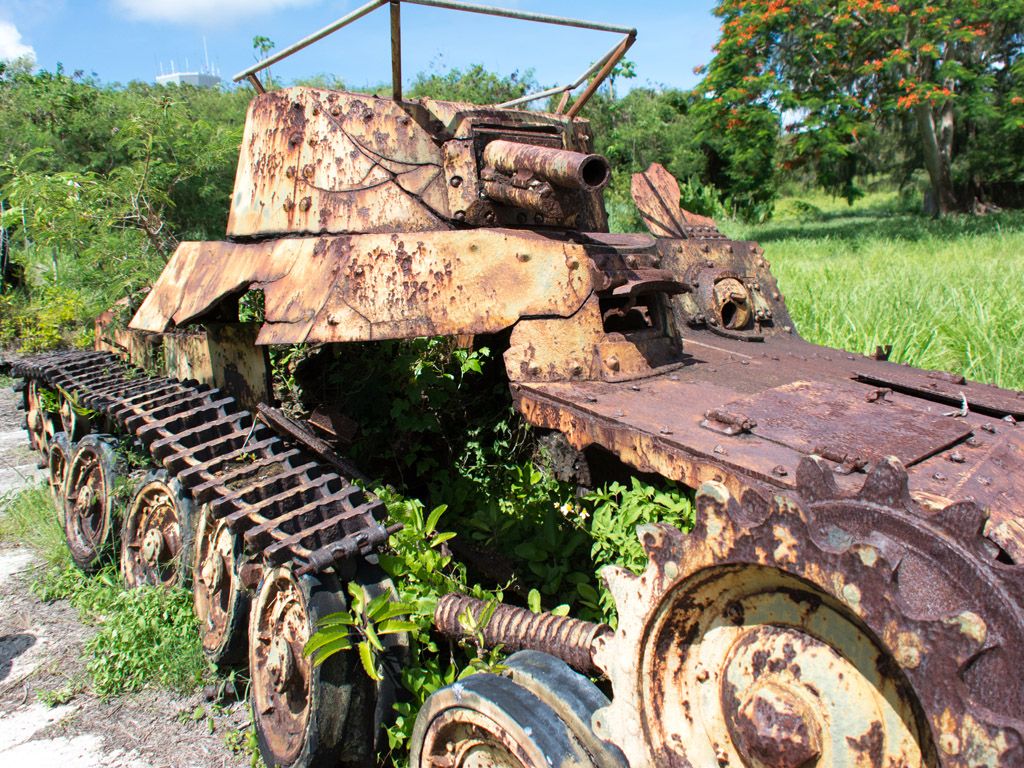バンザイクリフやスーサイドクリフト、戦争で使われた錆びついた戦車や防空壕、弾薬庫を訪れ、2度と戦争は起こしてはならないという思いを新たにしました。