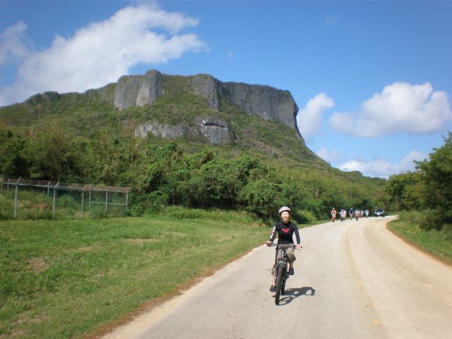そのせいもあってグロットでのシュノ−ケリングはできませんでしたが、いざマウンテンバイクで出発すると、さっきまでが嘘のような快晴に!サイパンの風を感じながら、気持ちのいいサイクリングを楽しめました。