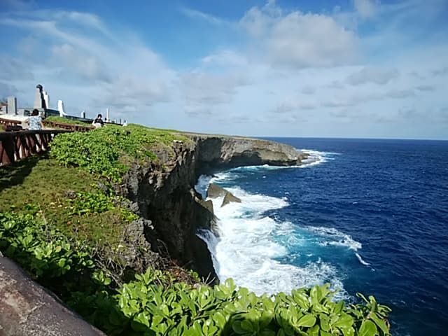 ピックアップタイムにお迎えが来ず、ホテルのフロントに確認してもらうと、どうやら予約が入っていなかった模様…その後、3分ほどでゴルフカートに乗ったガイドがお迎えに来ました。オフィスが、私たちの泊まったマリアナリゾートのすぐそばだったので、この迅速な対応ができたんですね(^_^;)オフィスに到着すると、すぐに支度をして、用意されたマウンテンバイクのレクチャーが始まりました。マウンテンバイクは電動で、自分たちのレベルに合わせて電力の強さを調整してくれます。私たちは普段運動をしない初心者だったので、一番出力を強くしてくれました。オフィスの隣にある土地でひと通り練習をすると、いざ、ロードイン!マリアナリゾートから主に北部をまわります。強い日差しは差しますが、風を受けながらのサイクリングのため、汗は滴り落ちず、とても気持ちよかったです。スーサイドクリフ→バードアイランド→グロット→バンザイクリフを周遊しました。スーサイドクリフは崖の上なので、大変そうでしたが、出力マックスの電動マウンテンバイクが完璧にアシストしてくれました。普通の自転車では、あのアップダウンは無理です( ゚д゚)スポットに着くたびに、場所の説明をしてくれ、初のサイパンをよく知ることができました。特に、日本人として、スーサイドクリフとバンザイクリフを訪れることができてよかったです。ツアー参加者は、私と姉の2人だけだったので、ゆっくり好きな場所で写真を撮ったり、ガイドさんとお話ができました。ガイドさんは、ランディーさんというサイパン人で、奥様が日本の方ということで日本語もお話できました。フレンドリーですが、馴れ馴れしいわけではなく、とても丁寧で心地いい距離でガイドしてくださいました。