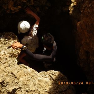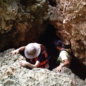 ロープを使うような急斜面を25分程下りて行き、岩と岩の隙間を入り込んで行きました。
