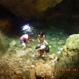 その辺から子供たちは大興奮!洞窟の中のプールで20分程泳いだ後、シュノーケルポイントへ移動しました。先に海に入った子供たちがまたも大興奮!何かと思って海に入ってみると