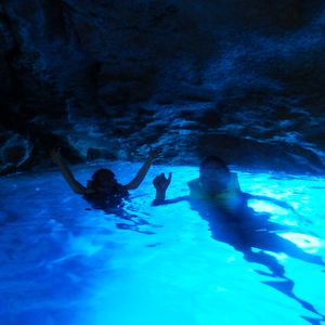 洞窟の外から陽光が差し込み、青く輝く海の色は本当に最高でした。