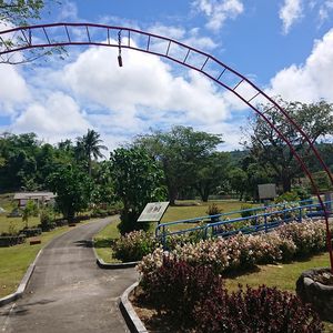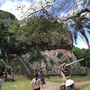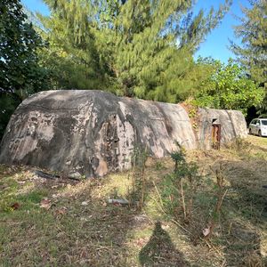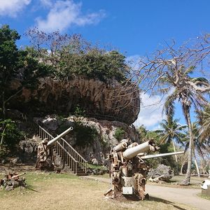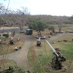 ラスト・ジャパニーズ・コマンド・ポストは、一見国樹・フレームツリーや国花・プルメリアが咲き乱れ緑あふれる美しい場所なのですが、爆撃を受けた跡や砲台が残っていて戦争の傷跡が間近で感じられました。