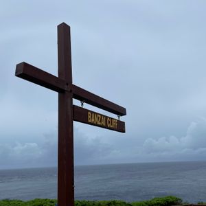 万歳クリフ、日本運司令部、崖の上から身を投げた場所案内していただきました。崖の上から下を見たら足がすくんでしまいました。崖から飛べなかった人たちは手りゅう弾で自害したそうです。そこには十字架と観音様がありました。日本人ばかりじゃなくアメリカの人たちも亡くなっているので慰霊碑としてのこしてありました。日本の女学生もそこで亡くなっているのです。