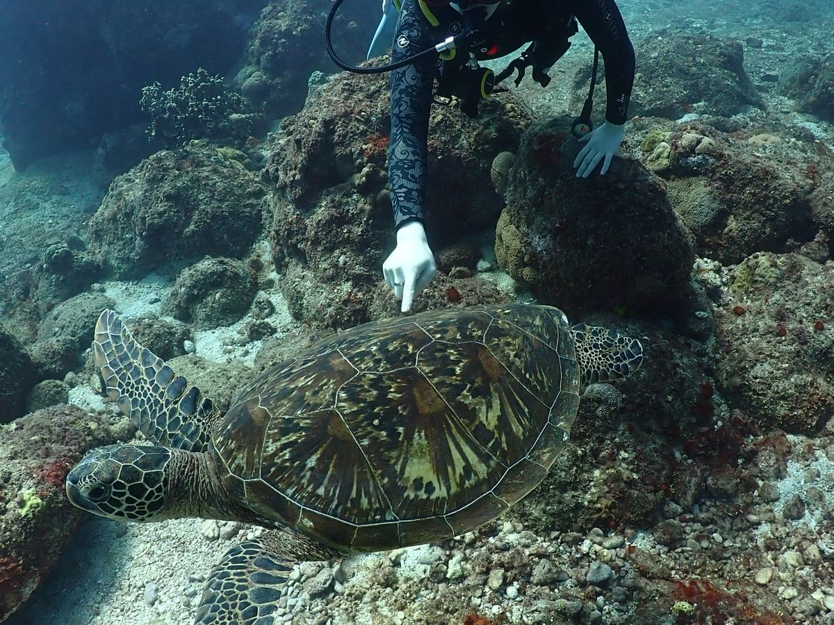 初心者にもずっとつきそいで2分に1回は大丈夫か?みたいな感じで見てくれて、そのおかげもあってパニックにもならずそしてウミガメにも会えました。