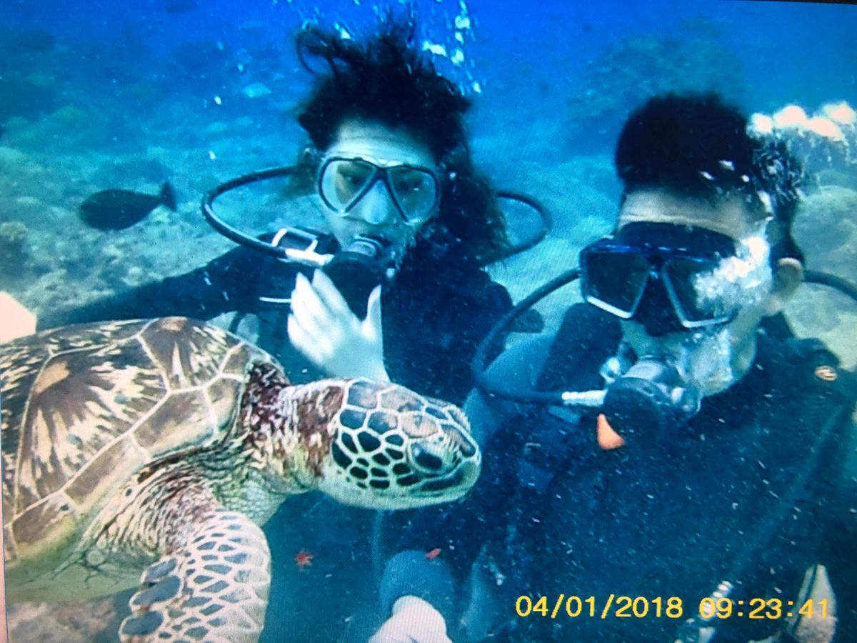 初ダイビングでしたが、海亀にも会えてラッキーでした。いろいろトラブル対象法を最初に教えてもらえますが、いざダイビング中になると怖くなってあがりたくなりますが、インストラクターさんのヘルプであがらずに続けられました。