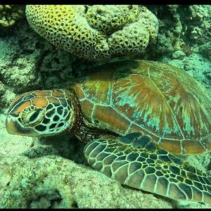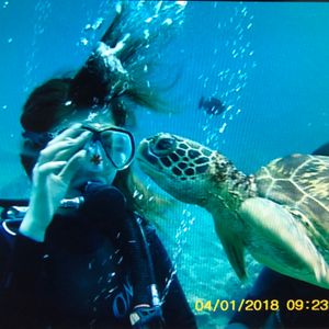 初ダイビングでしたが、海亀にも会えてラッキーでした。いろいろトラブル対象法を最初に教えてもらえますが、いざダイビング中になると怖くなってあがりたくなりますが、インストラクターさんのヘルプであがらずに続けられました。