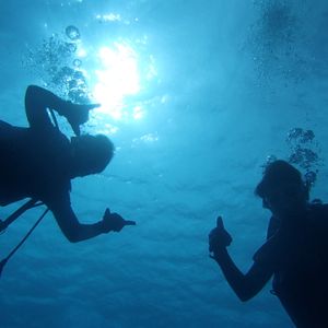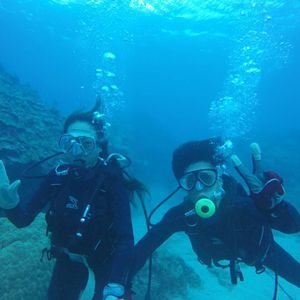 2人とも初めてのダイビングだったのですが、丁寧にそしておもしろく教えていただいたおかげでとても楽しかったです。