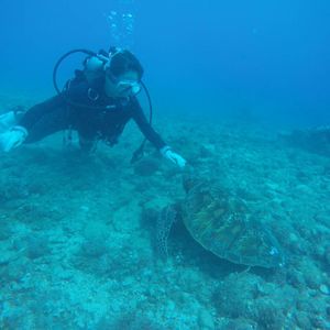 初めての耳抜きが上手くいかず不安になってきてしまった時、何度も確認してくれたり合図をくれたり、楽しむことに没頭させて下さり、以降私は安心してダイビングを楽しめました(*´ー`*人)そして、海ガメが可愛すぎて幸せでした!!途中旦那の調子が悪くなった時も、大変親切丁寧に安全に対応してくれました!心から感謝です!みなさん、アクアブルーさんをオススメします!
