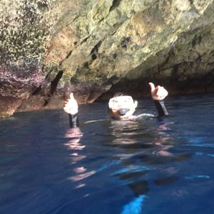 ダイビングではウミガメやアジの群れを積極的に探す楽しさを提供してくれたり、グロットでは素潜り指導もしてくれてました。