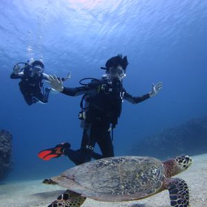 友達がライセンスがなく、体験ダイビングで参加しました!風が強くブルーホールを断念し、友達の練習に付き合いました!修学旅行生がいっぱいいてすごく混んでいました!亀もみたかったですが見れませんでした!運があんまりなかったです!
