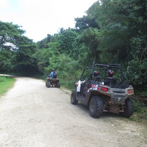 9:30のバギーのみのコースを申し込みました。8:45にホテルに迎えが来て、送迎車でツアー場所まで行きました。現地では多くのアクティビティを扱っているようで、アクティビティごとに分かれて説明ビデオを見ました。その後実際に試乗して、本コースに出ます。コースはほぼほぼジャングルで、凸凹道です。草もめちゃくちゃ生えているので運転中に攻撃されます。途中の休憩場でココナッツジュースを飲みました。体験後はガイドが撮ってくれたムービーを購入することができます。迎えの車が来るまで結構待ちましたが、ホテルに戻ったのは13時前でした。