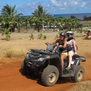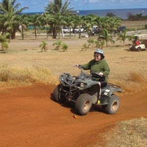 ダイビングとゴルフをするためにサイパンへ行き、余った時間に何をしようか考えやった事がなかったオフロードに参加しましたがめちゃくちゃ楽しかったです。初めはすごくうまく出来るか緊張でしたがサイパン乗り⁇(笑)な感じてはありましたがブレーキ、アクセルなどのレクチャーがありました。わたしは女の子グループで行ったのでバギーではなく1人ずつ乗れるATVで参加しましたがカップルの方は彼氏さんが運転して彼女さんが横に座って参加されてる方もおられましたが車高の低いバギーだと泥道でかなり汚れると思います(^_^;)途中ハンドル操作が難しい所もありましたがせっかくですし自分で運転出来るATVに参加される事をわたしはオススメします♪途中でココナッツジュースはあまり美味しく無いですがココナッツはかなり美味しかったですよ~