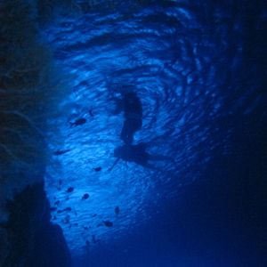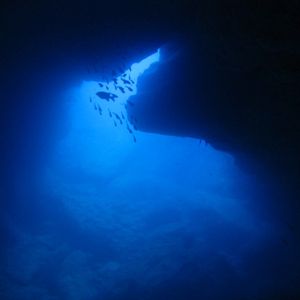 念願のグロットにダイブ&シュノーケリング天候がうす曇りだったため、差し込む日差しは弱かったですが深い青い海感激の一言です。