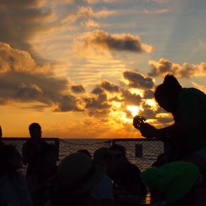 船に乗船したらドリンクを配ってくれるので、そのドリンクを片手にまずはサンセットを楽しみました。水平線にゆっくり沈んでいく太陽を船上から眺めるのは、とても雰囲気があり素敵でした。