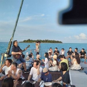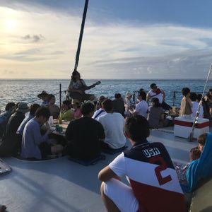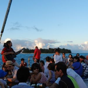 プロポーズをするために予約しました。司会進行の方がいろいろ考えてくれて、一生忘れない思い出になりました。その時歌ってくれた曲がすごく気に入りましたが、曲名を聞くのが忘れました、「This is the moment」みたいな歌詞でした。司会の方歌もトークもうまく、英語はもちろん、日本語、韓国語、中国語もできます。マニャガハ島付近で見る夕日が本当にきれいでした。暗くなってからはダンスタイムで大盛り上がり、あっという間の2時間でした。また行きたいです。