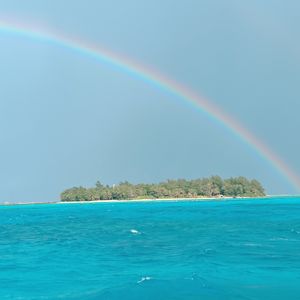 船が出発前は雨が降り曇ってましたが、島に着くと天気も良く虹も楽しむことが出来ました。海は今までで1番綺麗でした。透明度、水温、魚どれをとっても言う事なしです。