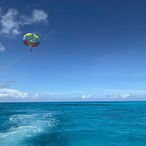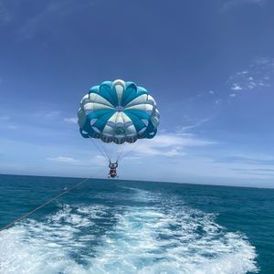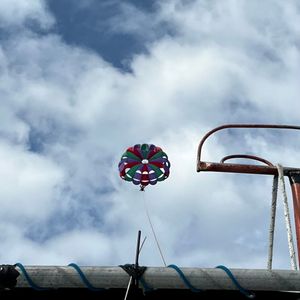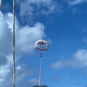 パラセイリングは当日の天候や海洋状況にもよりますがかなり高くあがることもあります。