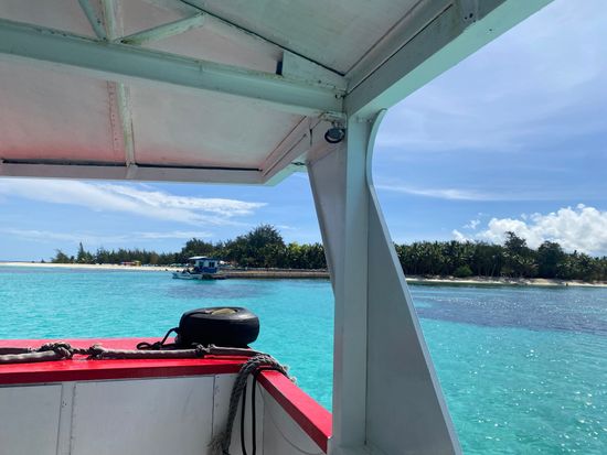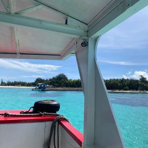 「到着時にマニャガハ島を背景にして写真を撮るなら船の右前方がおすすめです!」ととっても欲しい情報を教えてくださり、綺麗な島や海と一緒に写真に収めることができました。
