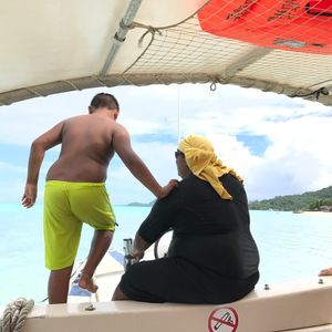 合計4回のシュノーケリングでエイ、シャーク、マンタ、熱帯魚を見ることができました。モツでの昼ごはんも美味しかったです。英語もフランス語もできませんがなんとかなりました。私達以外は2組の若い外人の二人連れでした。
