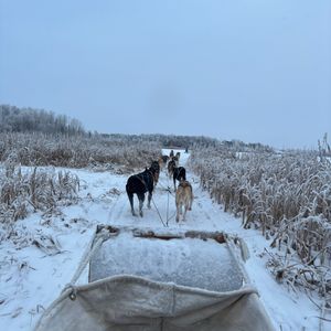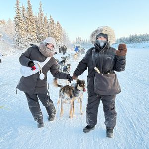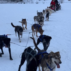 犬ゾリは初体験で面白く、訓練された犬達にも感心し、可愛いかったのですが、自分達が乗るソリが来るまでかなりの時間外で待たされとても寒かった。当初スタッフさんが2人乗りのグループを先に乗せようとしたのでスタンバイをしていたところ、現場の他のスタッフに急に3人乗りから、と言われ、ソリが湖を周って戻るまで30分以上は小雪も舞う寒さの中立ったまま待たされました。最初に乗ったグループは終了後にバスに乗せてもらい先に帰ったようで、寒さの中待たされることもなかったようですが、今回のように申し込み者の数に対してソリの数が限られる場合はその場で適当に決めるのではなく、迎えのバスの中でオペレーションをもっと綿密に考えてもらいたかった。迎えのスタッフと現場のスタッフとの事前の打ち合わせを徹底してもらいたい。