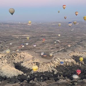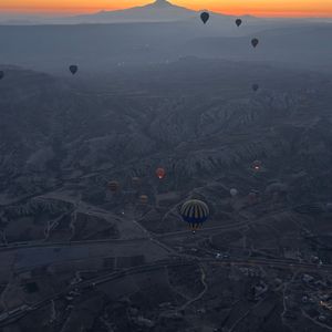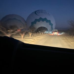 ギョレメ地区から気球の打ち上げ会場までは、まだ暗い街とほんのり色づいてきた朝焼けを見ながら車で約10分。