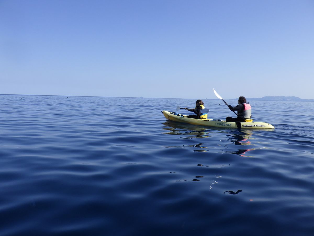 波が穏やかで子供だけでカヤックを漕がせてみるとちゃんと前に進みました。