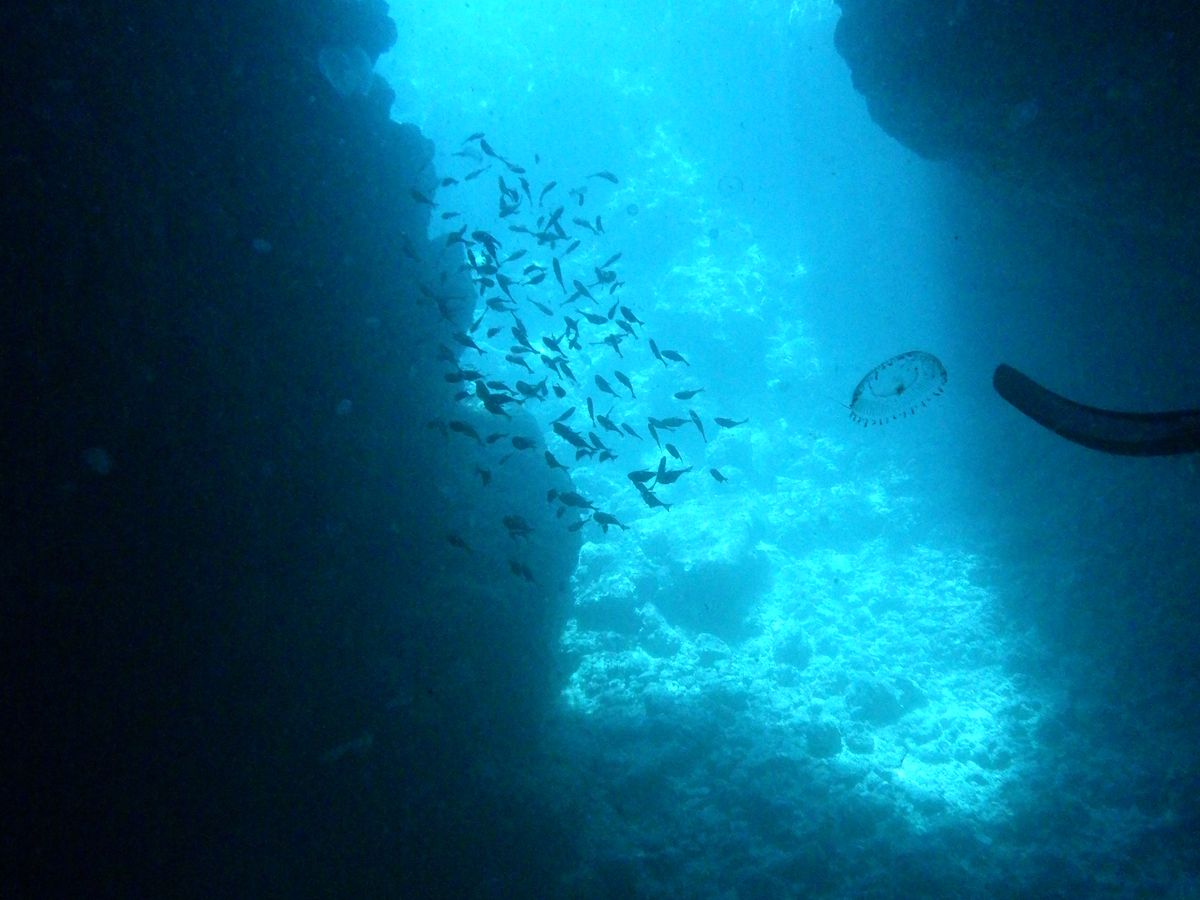 シーカヤックで片道1.5kmをえっちらおっちらひたすら漕いで、青の洞窟の入り口まで。。。