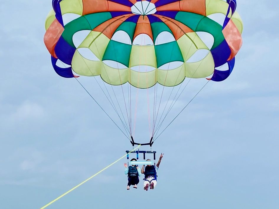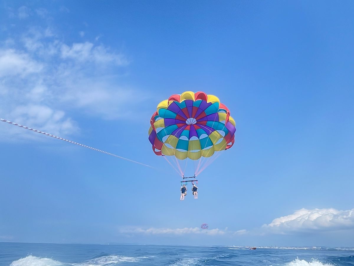 移動中の船も猛スピードで浮遊感があって、それも新しい体験だったからすごい楽しかったし、音楽もかかっててテンション上がった!パラセーリングも緊張したけど怖くなくて安全に上がり上からの景色が良かったし、良い思い出になった。
