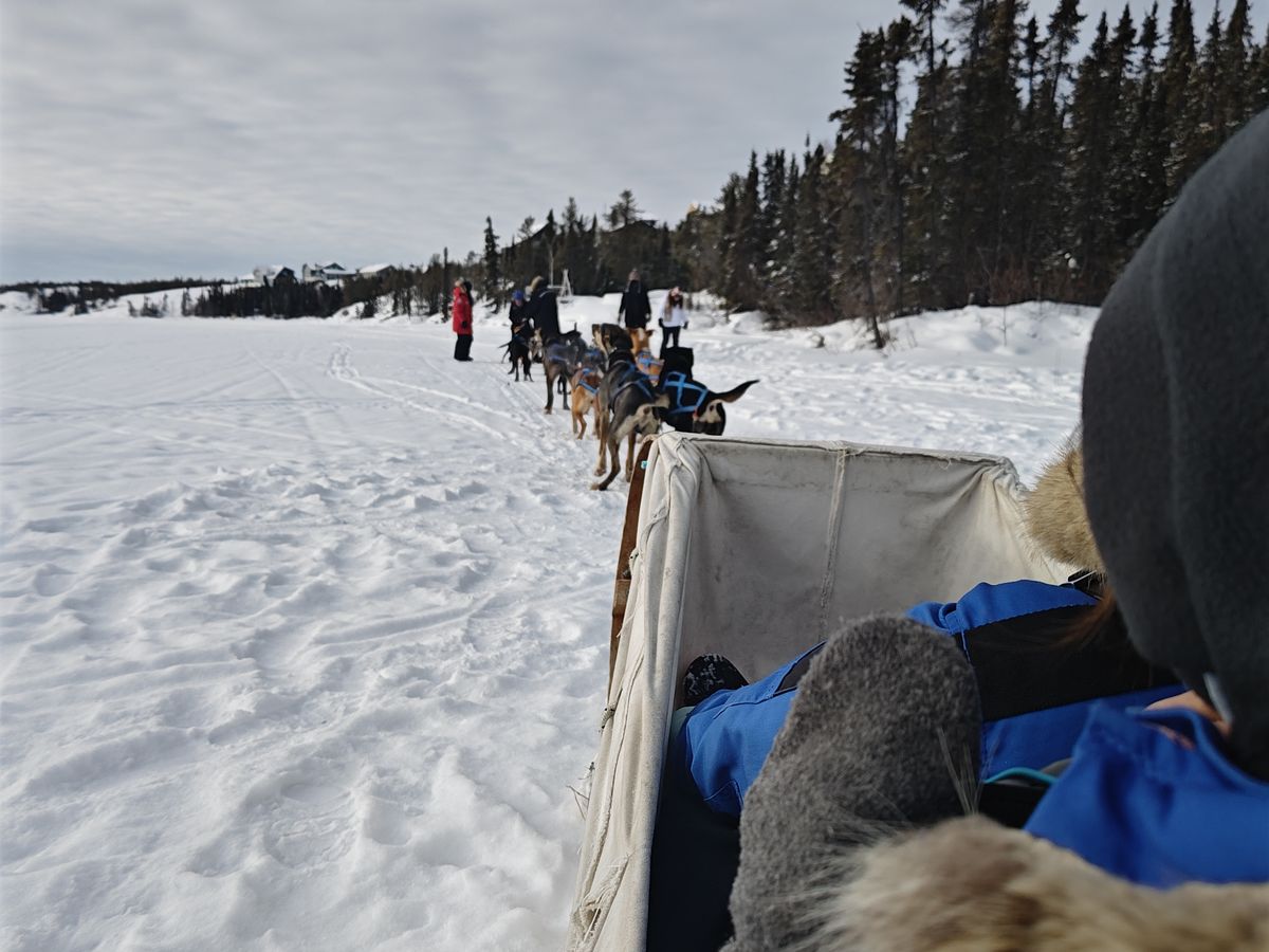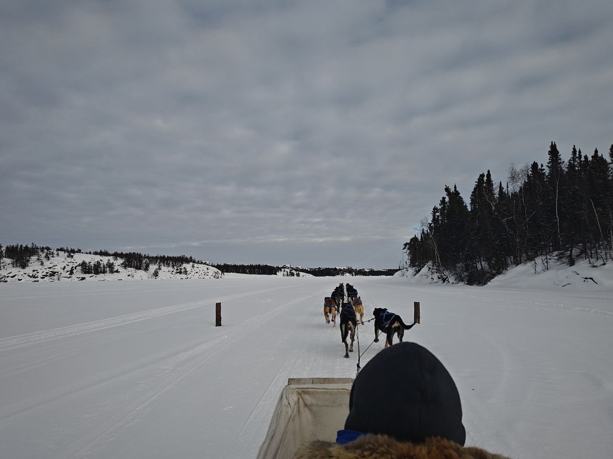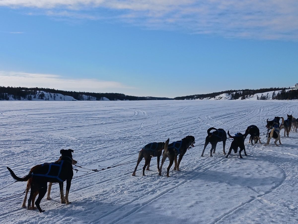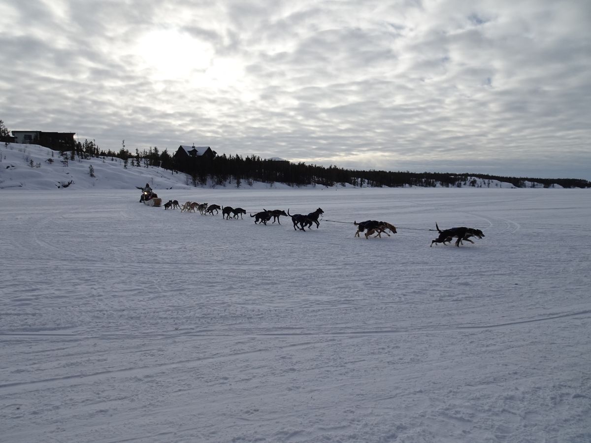 ワンちゃん達が元気でビックリです。ブレーキ用にスノーモービルが後方につながれていますが、もろともせずに引っ張っていきます。凍った湖の上を、爽快に走り抜けますので、めっちゃ楽しかったです。意外と距離が長いので、後半は寒くて顔を覆ってました。こんな経験は絶対に出来ないので、オススメですよ。僕らの犬ぞりは、元世界チャンピオンの操縦だったので、更に貴重な体験になりました。