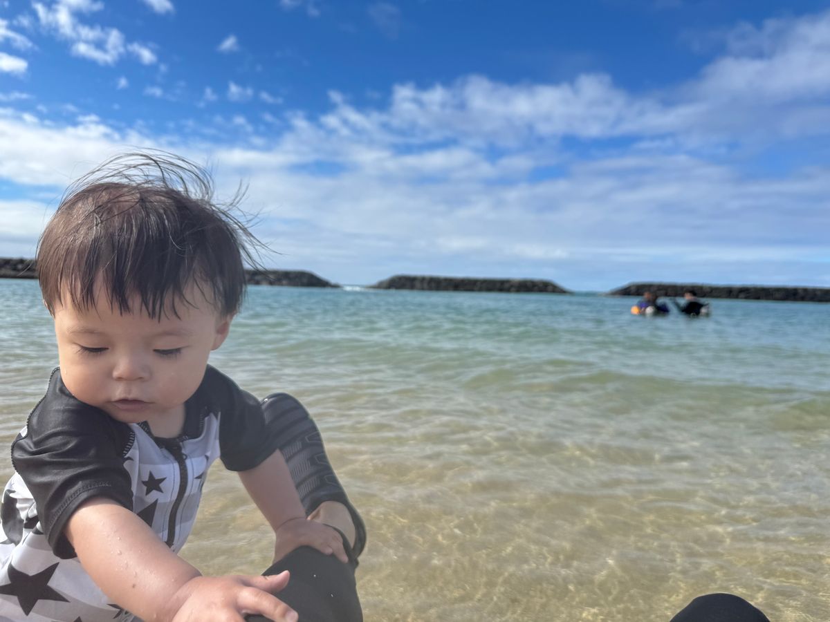 波の静かなビーチなので、2人が目の前で潜っている間、お借りしたお砂場セットや波打ち際で楽しく遊べました。いくつもダイビングツアーが来てるのにゆったりでまるでプライベートビーチでした。