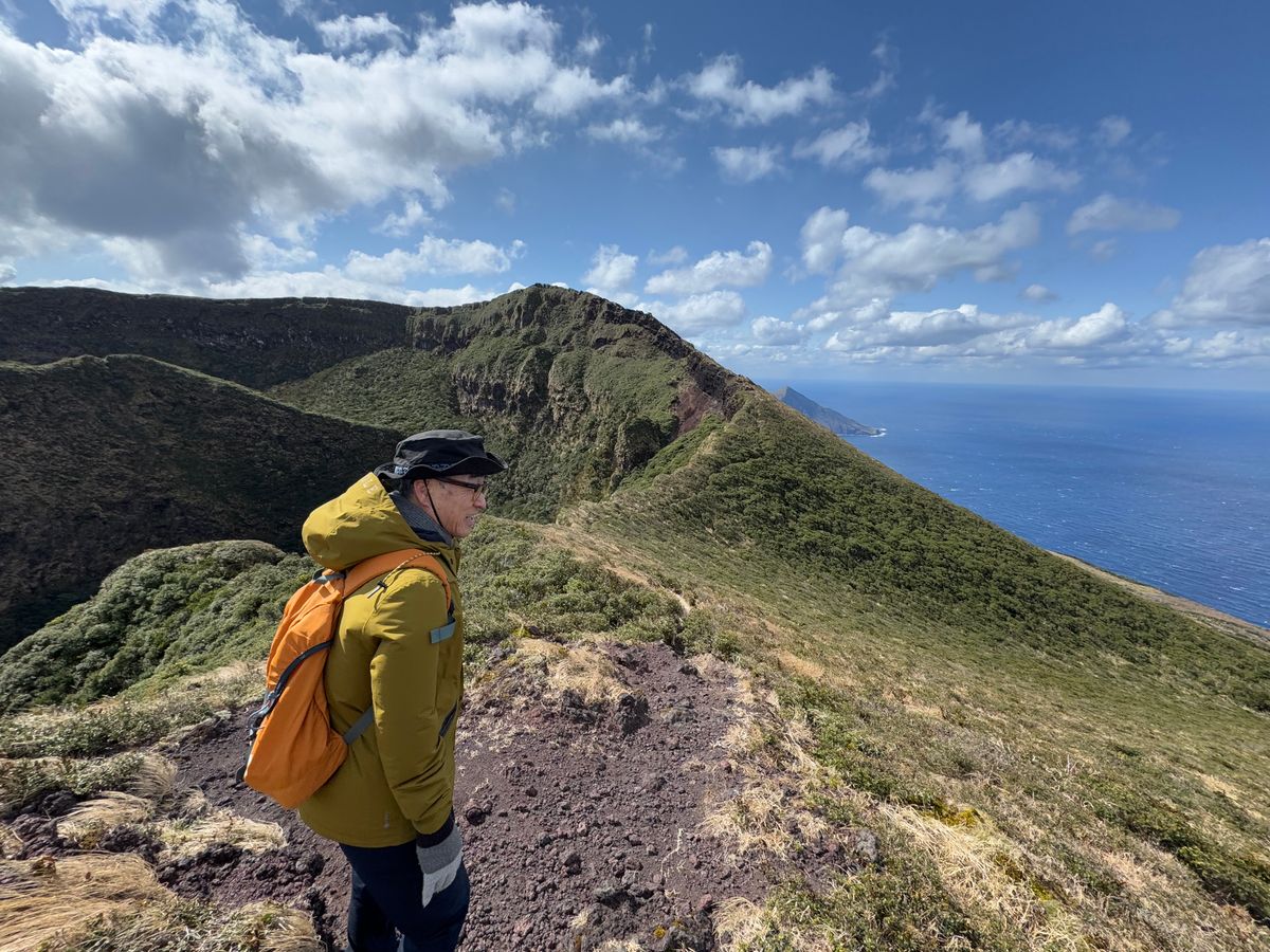 結論は大正解です。ガイドさんが優しくサポートしてくれるので凄い強風の中安全にお鉢巡りができました。南に青ヶ島、北に御蔵島等の島々が見ることができました。