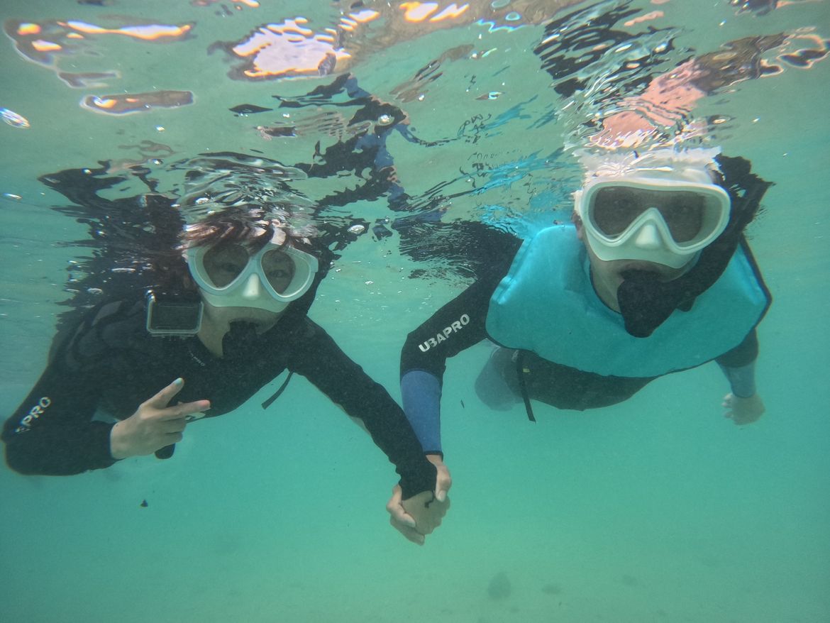 朝の8時からシュノーケリングでしたが、いざ海に入ってみると、ゆうい君の言う通り、直ぐに海水の温度に身体が慣れて、また、綺麗な海なので、2人してテンション爆上がり❗️