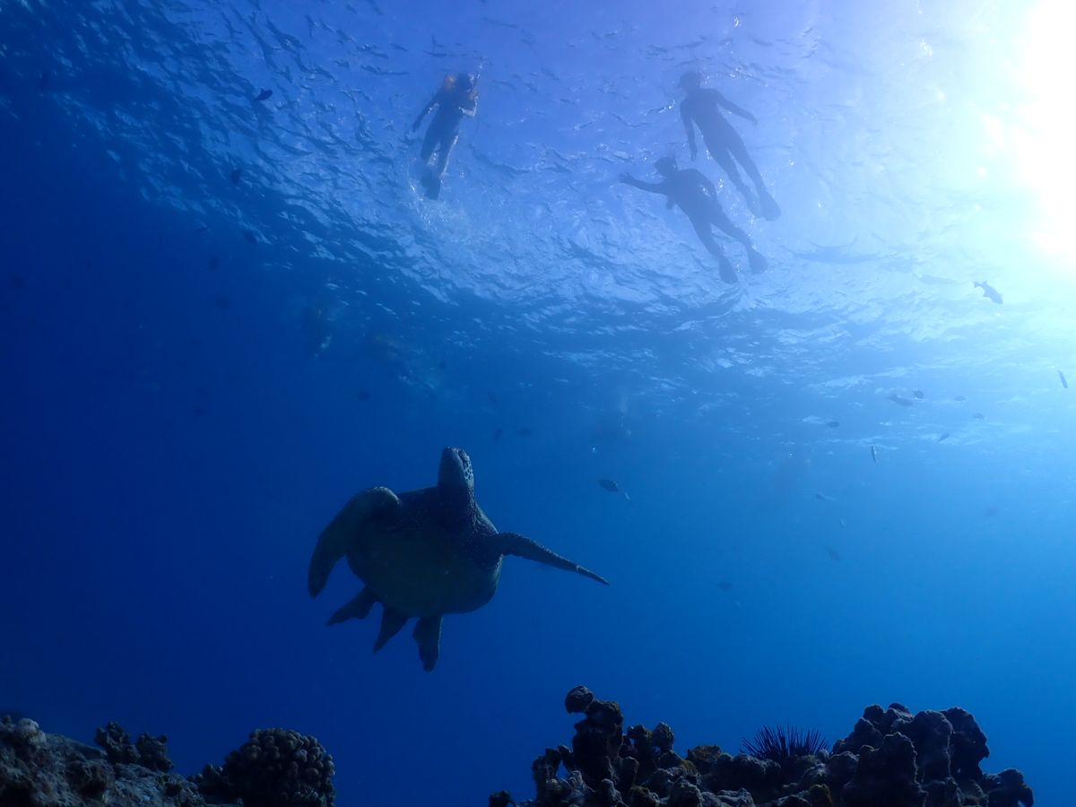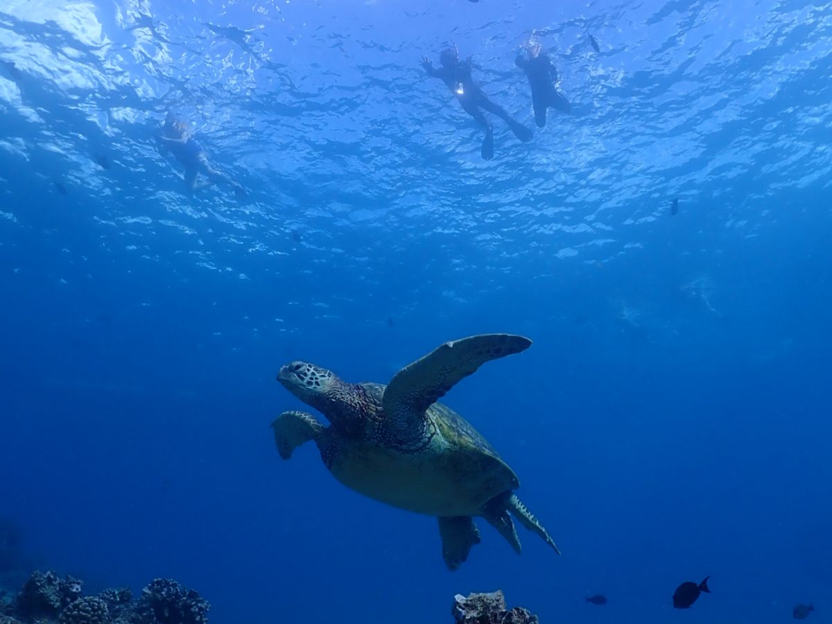 当日は運良く、海の透明度が良く、ウミガメがたくさん見れました!潜っている間は常にウミガメを見ることができました!