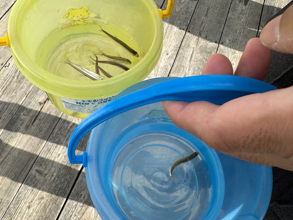 ワカサギの入ったバケツを持って受付に行くと、しばらくしてアツアツの天ぷらにしてくれます。ちゃんと一人7匹ずつありました!味も美味しかったです。ついでに食べたバターじゃがもお勧めです。