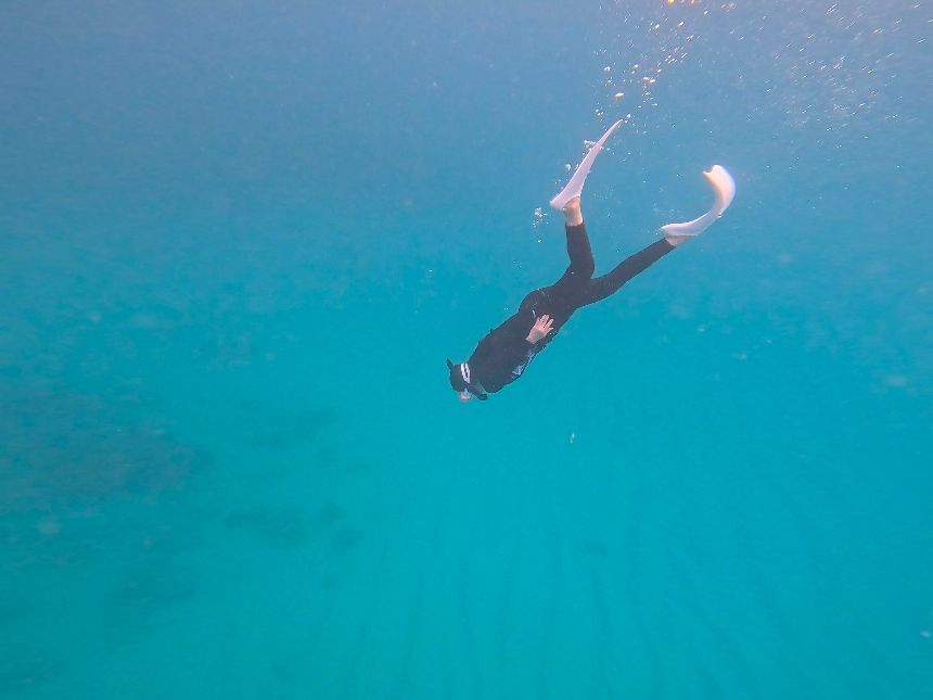 Naomiさんにスキンダイビングのコツを教えていただいたら、あっという間に潜れる時間、潜れる深さが変わりました。スキンダイビングができると、スノーケルの世界が変わります!楽しさが何十倍も広がりました!!ダイビングと違って、フィンとマスクさえあればできるので、今後も自分で楽しめるアクティビティが増えました!