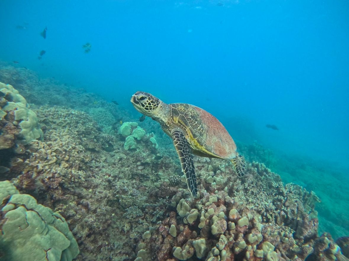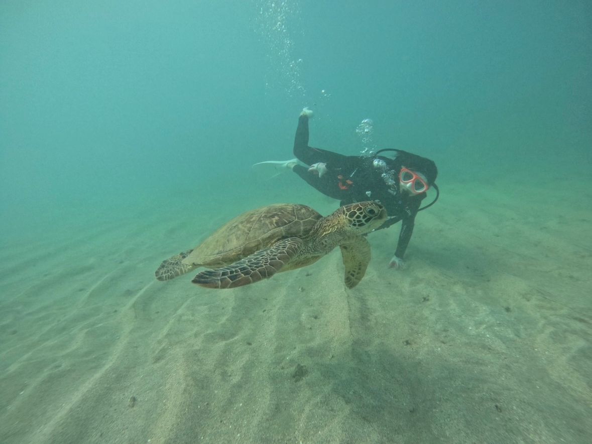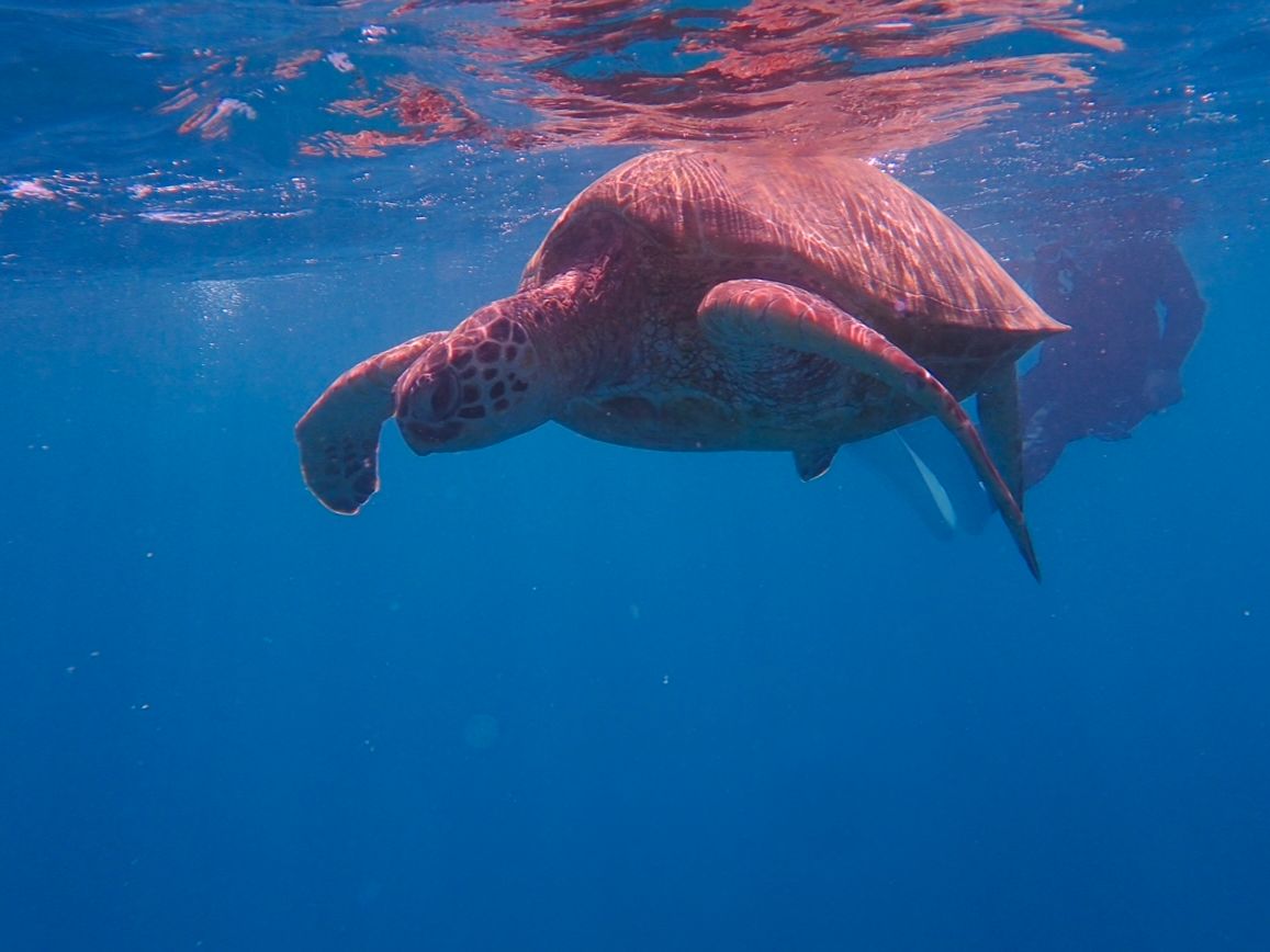 なんといってもウミガメ天国!こんなにもウミガメに会えたのは初めてです!6〜7匹には出逢いました。Naomiさんはウミガメを見つけるのが早い!スノーケルで混雑しているエリアから離れて、いち早くウミガメを見つけてくださるので、ウミガメとゆっくり泳ぐことができました!