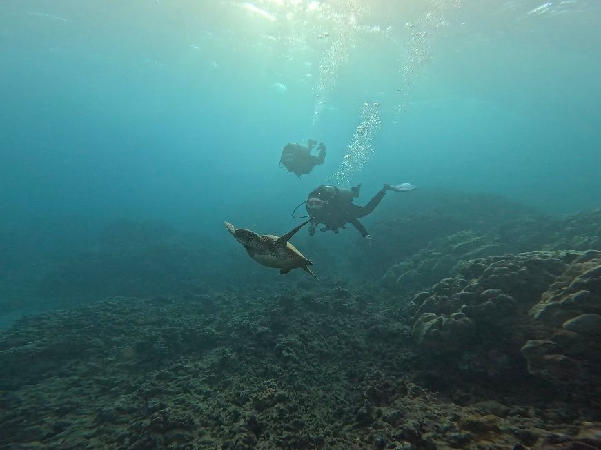 ウミガメにもたくさん出逢いました。岩の影でリラックス中のウミガメちゃんの可愛さといったらもう...。ハナウマはスノーケルの方も多いですが、ダイビングで沖の方まで行くと、ゆっくり泳げたのでよかったです。